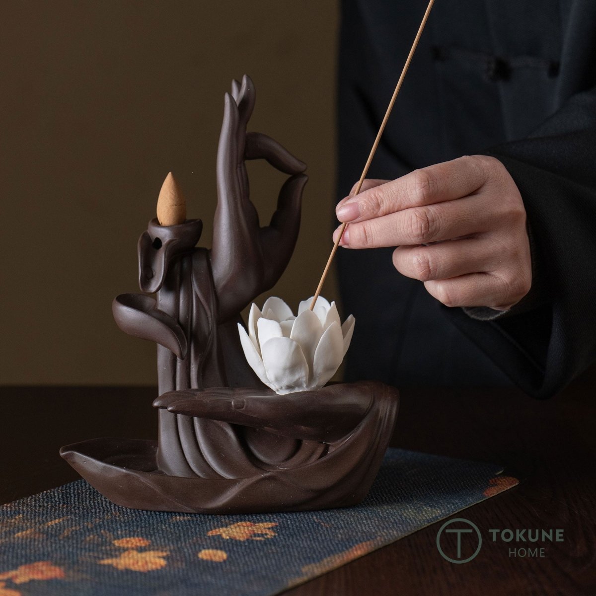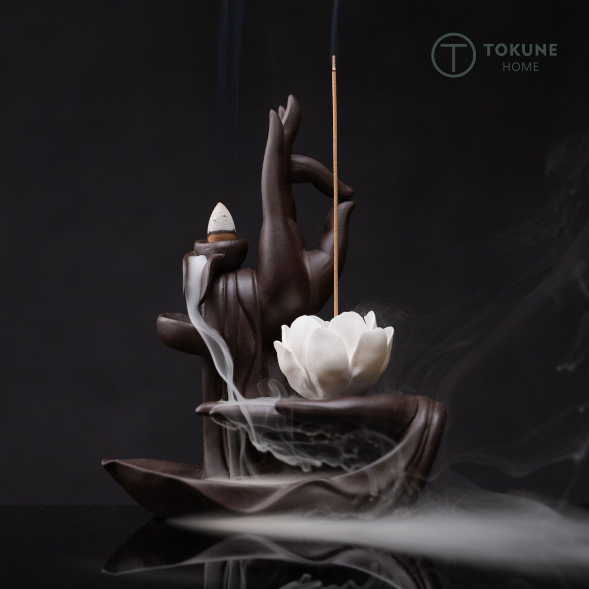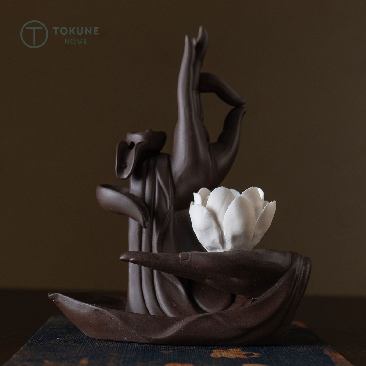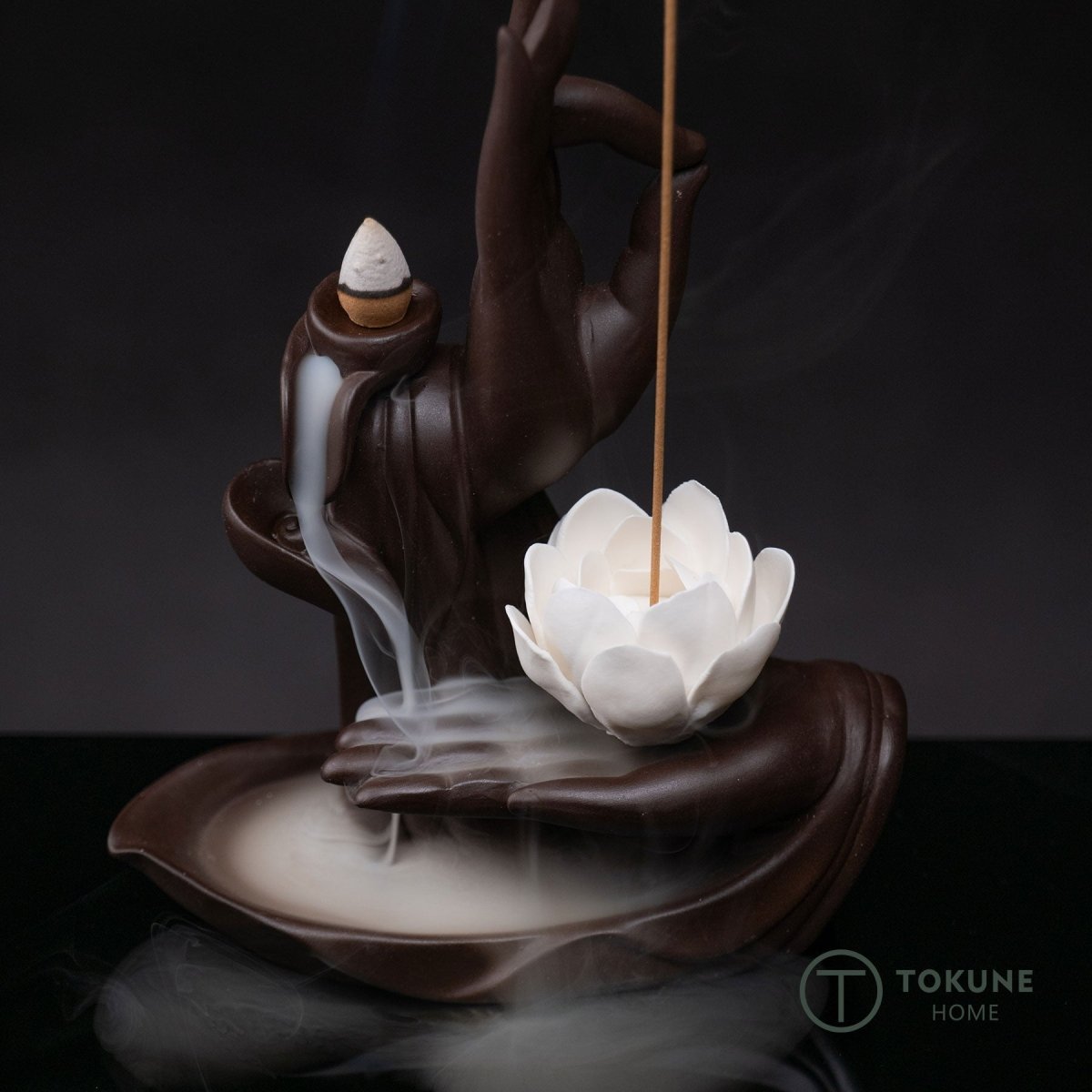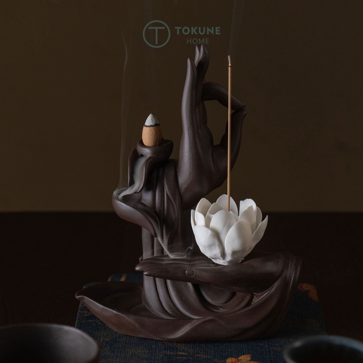 Tokune home 陶磁製 佛手蓮花デザイン倒流香炉&香立て|癒しの香りと美しい煙の流れ