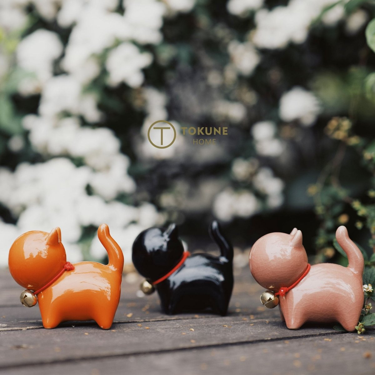 三色氷裂紋小猫陶器オブジェ3点セット|可愛らしさと上品さを兼ね備えた癒しの置物