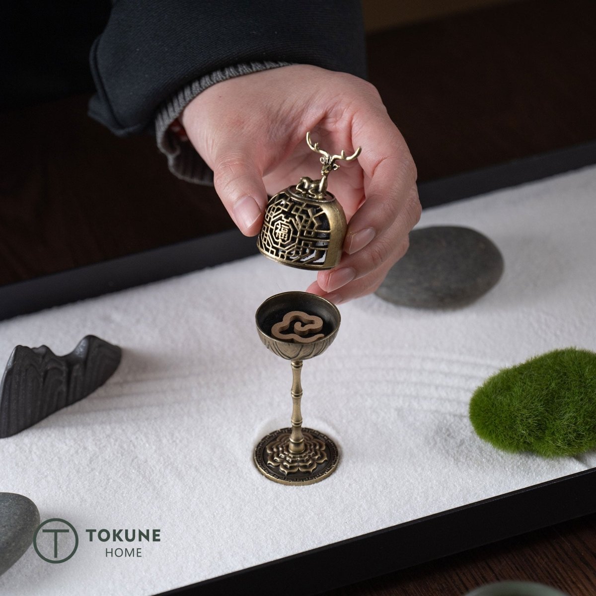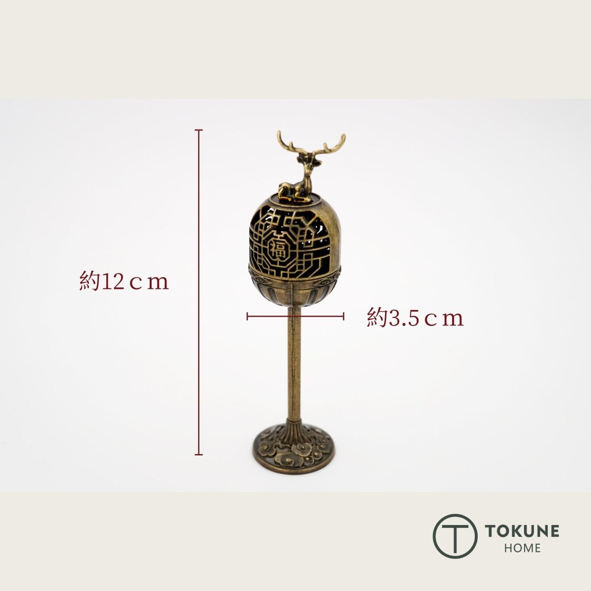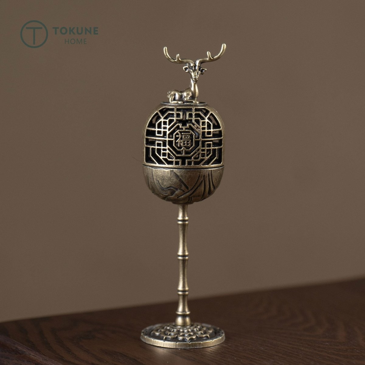 Tokune home 鹿モチーフ 高脚香炉|真鍮製 アンティーク調 インセンスホルダー