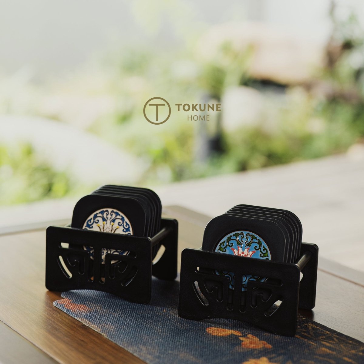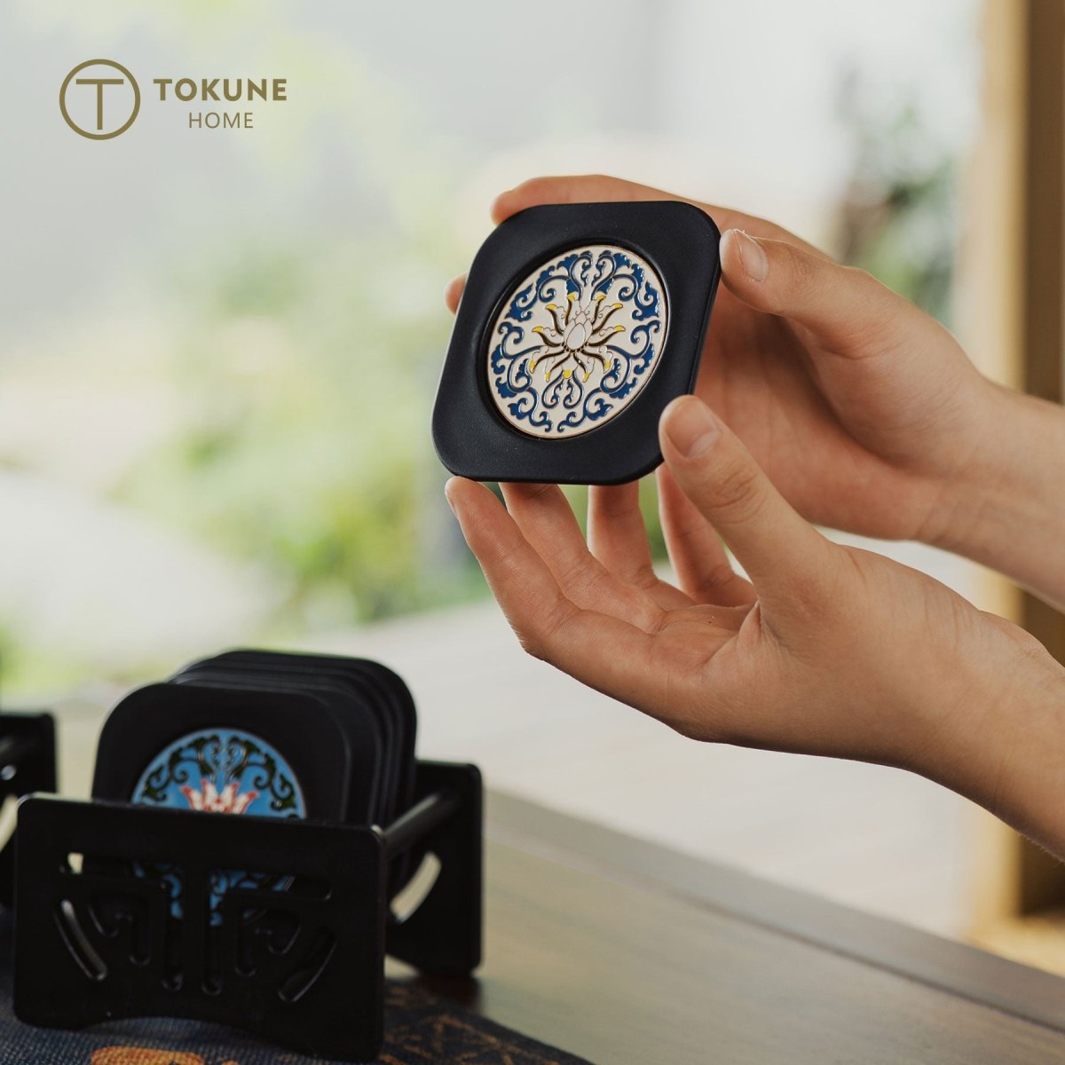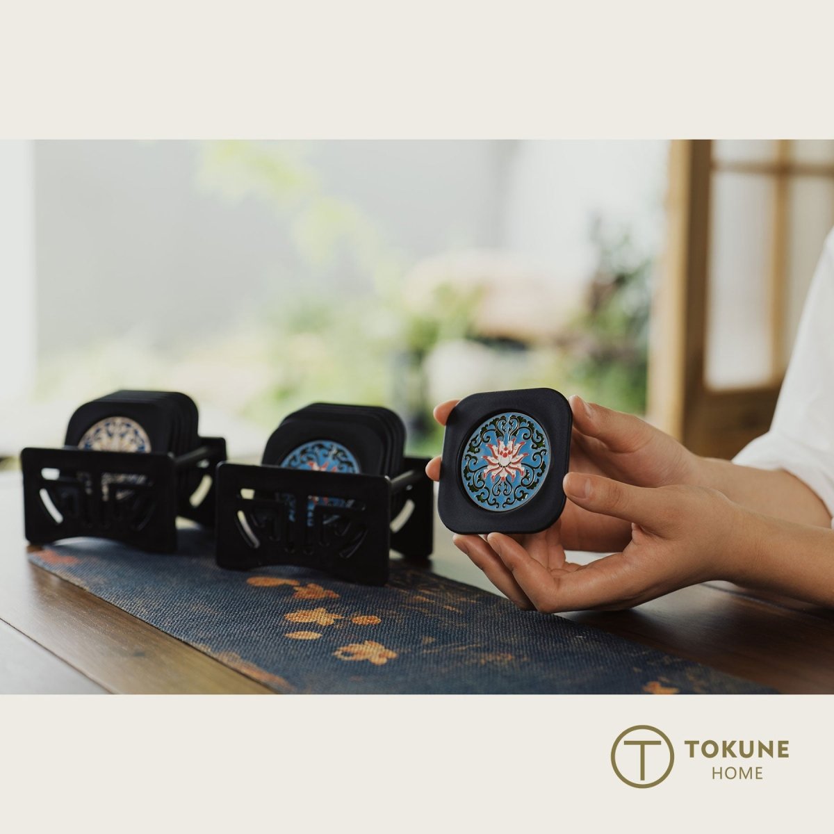 琺瑯彩コースターセット|電木枠とスタンド付きで上品な東洋美を添える逸品