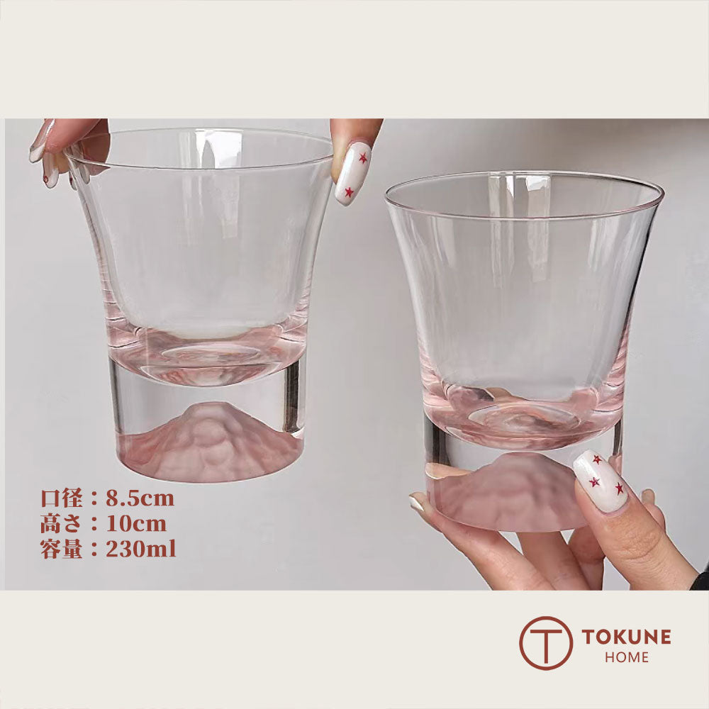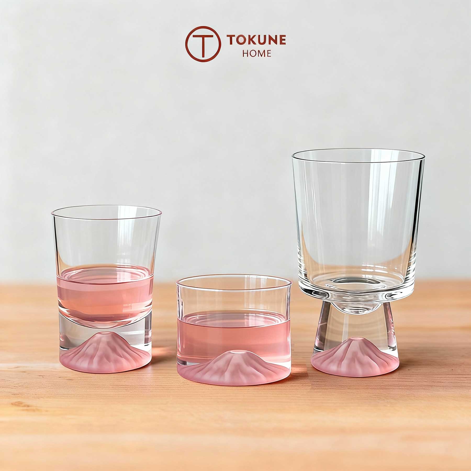 静かな富士が、テーブルにそっと現れる。桜色のベースが光を受けるたび、水面にやわらかな陰影が揺れ、いつもの一杯が小さな儀式に変わります。