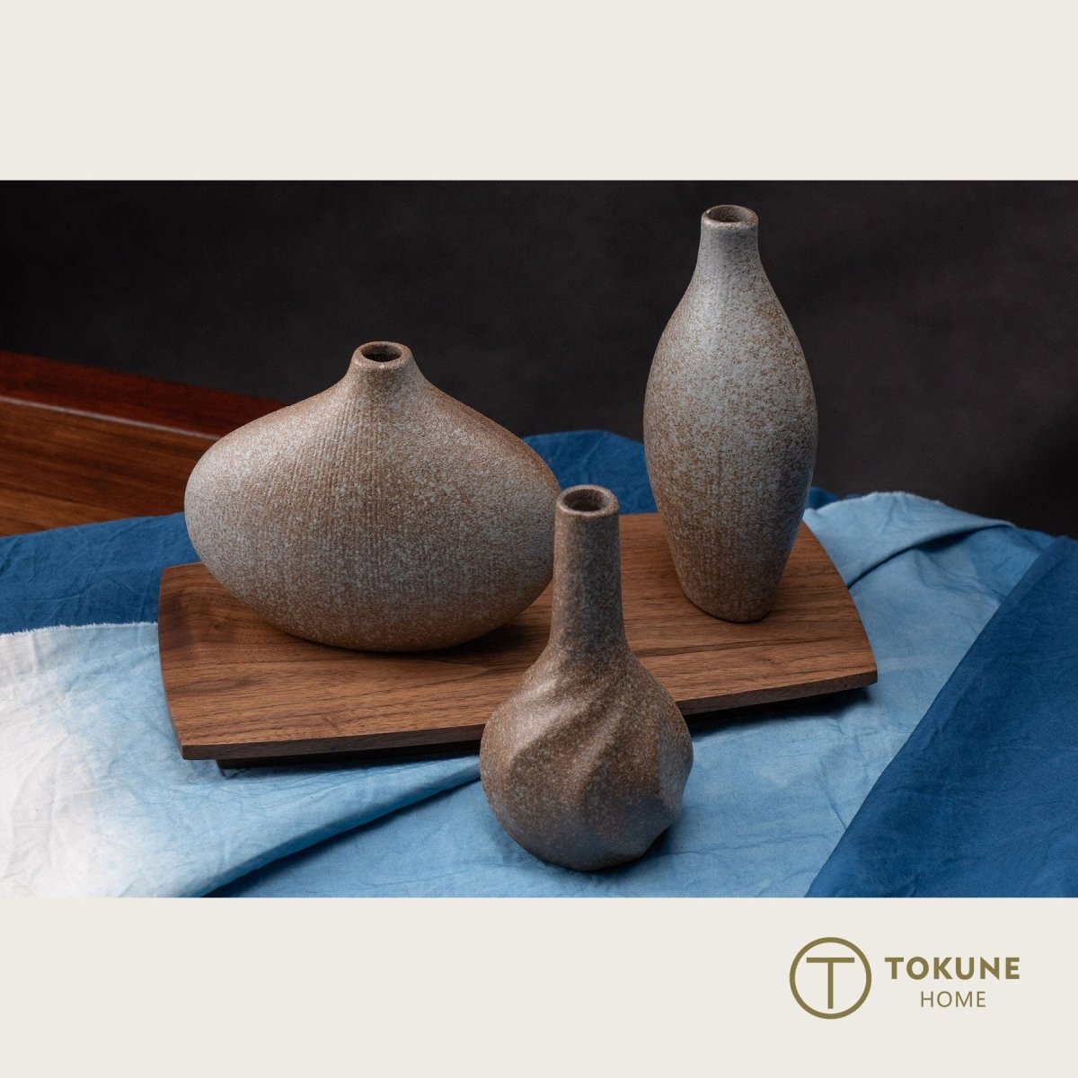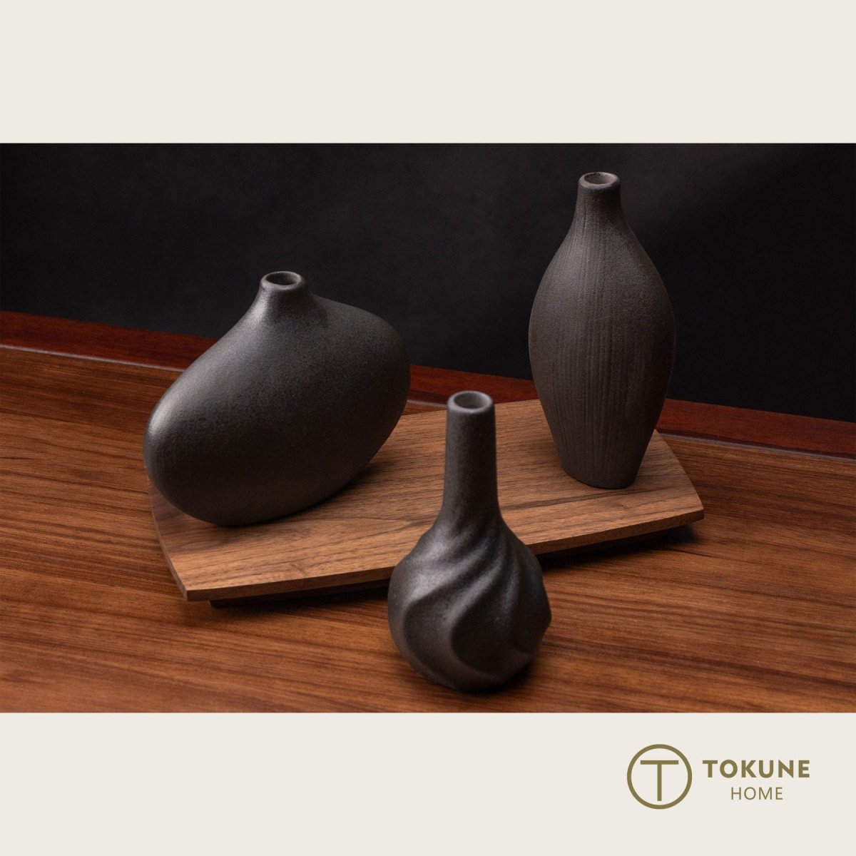 ブラック・ブラウン・ブルーの3色ミニ陶器花瓶セット|和モダン&北欧風インテリアに最適